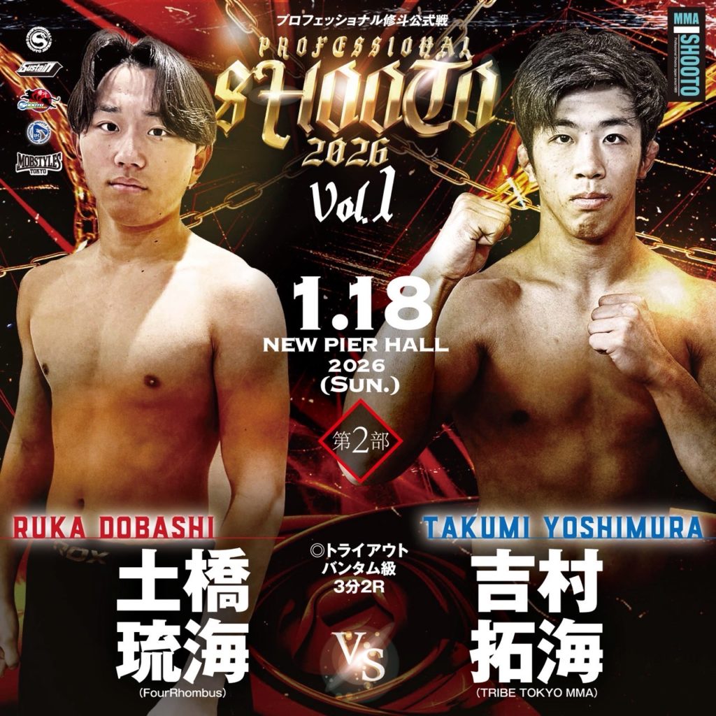 フォーランバス所属の土橋 琉海(どばし るか)の、2026年1月18日(日)、ニューピアホールにて行われる「PROFESSIONAL SHOOTO 2026 Vol.1」への出場が決定しました。