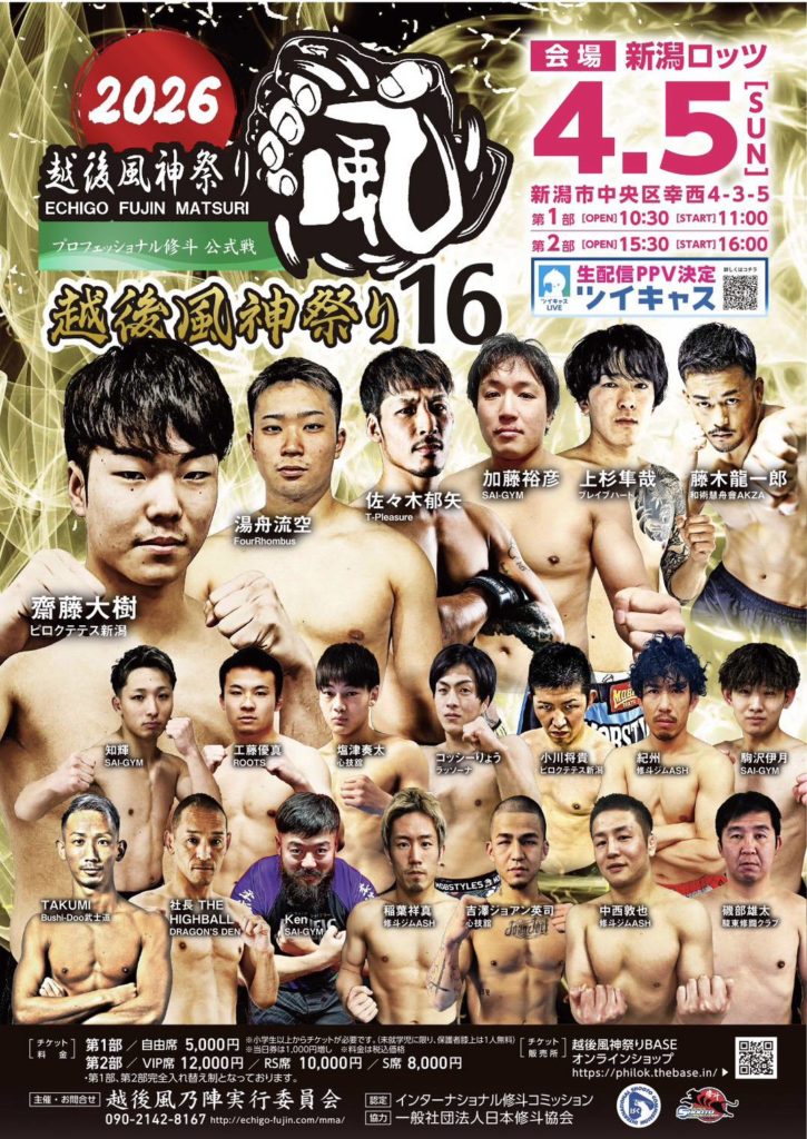 | 大会名 | プロフェッショナル修斗公式戦「越後風神祭り16」 |